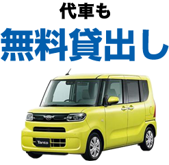 代わりのおクルマが必要な方は、修理期間中の代車を無料貸出しています。